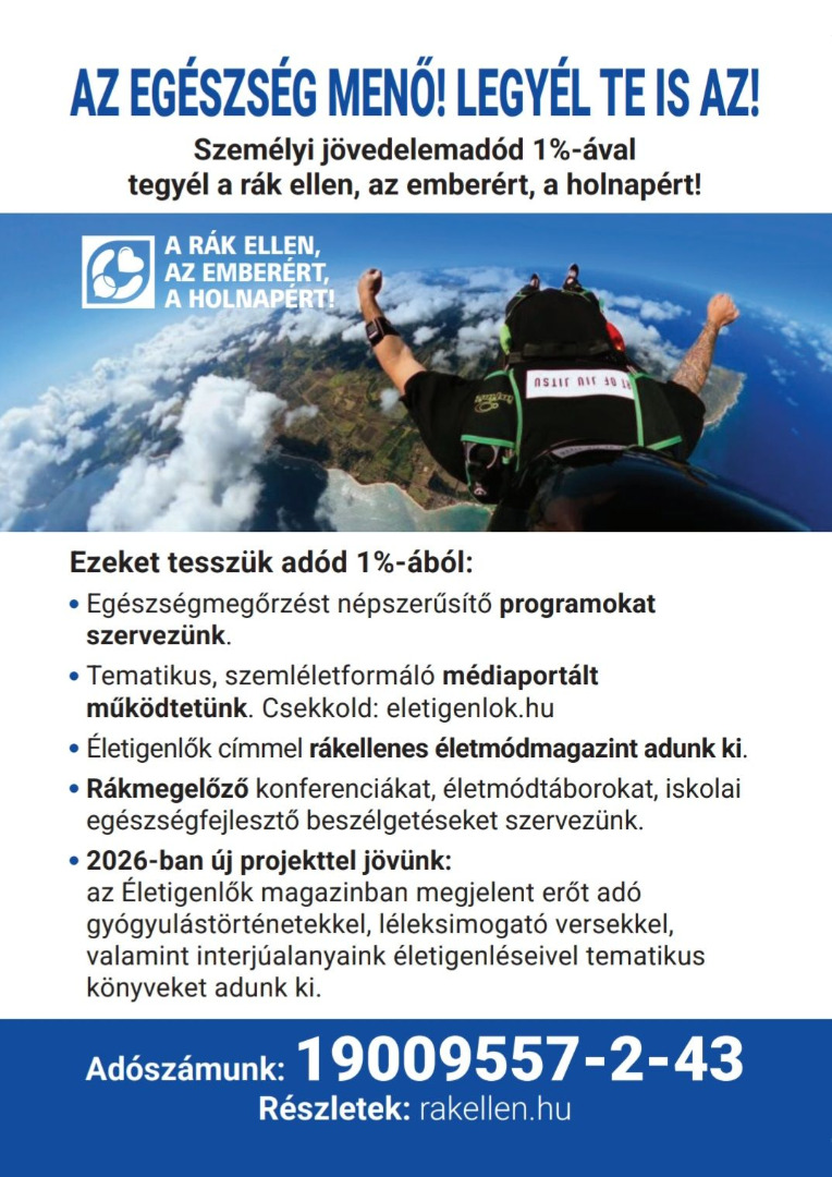 Köszönjük, hogy személyi jövedelemadód 1%-ával teszel a rák ellen, az emberért, a holnapért!